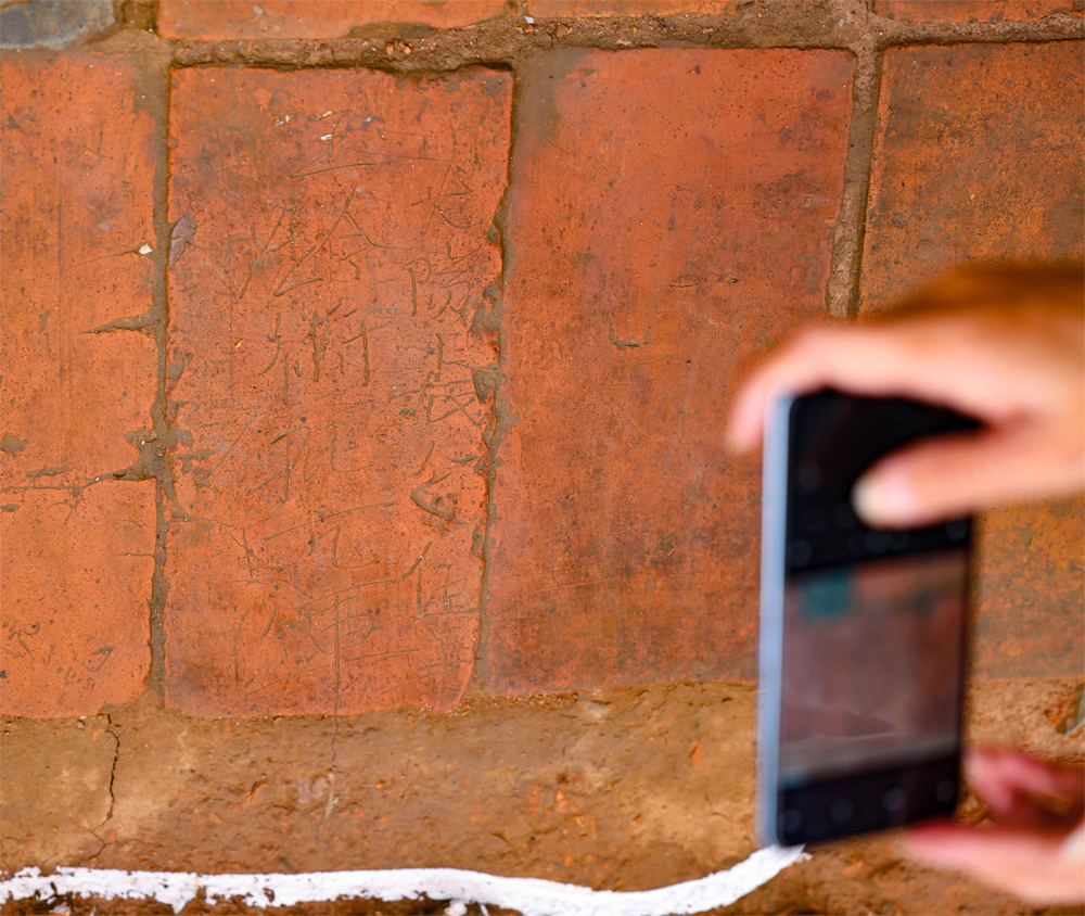 Viên gạch có thông tin về niên đại và đội ngũ sản xuất gạch xây dựng điện Kính Thiên. |