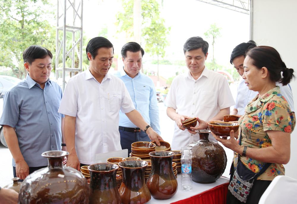 BẮC NINH - Chiều 24/4, đồng chí Lê Xuân Lợi, Ủy viên Ban Thường vụ Tỉnh ủy, Phó Chủ tịch UBND tỉnh tham quan các gian hàng cho công nhân tại phường Quế Võ và dự trao giải hội thi cắm hoa nghệ thuật của đoàn viên công đoàn do Liên đoàn Lao động tỉnh tổ chức.
