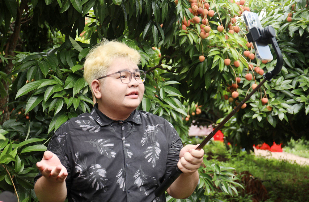 Livestream bán vải thiều trên nền tảng Tiktok. |