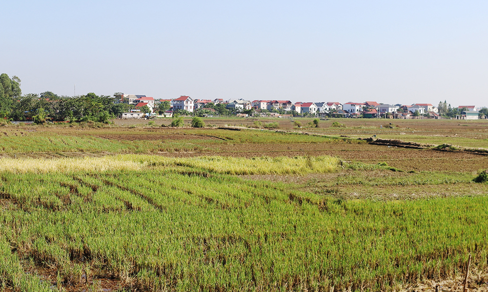 Trở lại thôn Ninh Tào, xã Hợp Thịnh một ngày đầu tháng 3, chúng tôi thấy nhiều ngôi nhà cao tầng khang trang mới được xây dựng. Theo ông Đào Văn Quán, Trưởng thôn Ninh Tào, hơn 80% diện tích đất sản xuất nông nghiệp được thu hồi để xây dựng Cụm công nghiệp Hợp Thịnh.