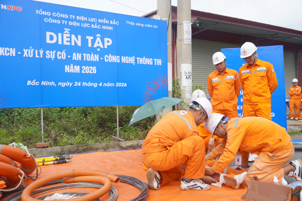 BẮC NINH - Ngày 24/4, Công ty Điện lực Bắc Ninh tổ chức diễn tập phòng, chống thiên tai và tìm kiếm cứu nạn, xử lý sự cố, an toàn và công nghệ thông tin năm 2026.