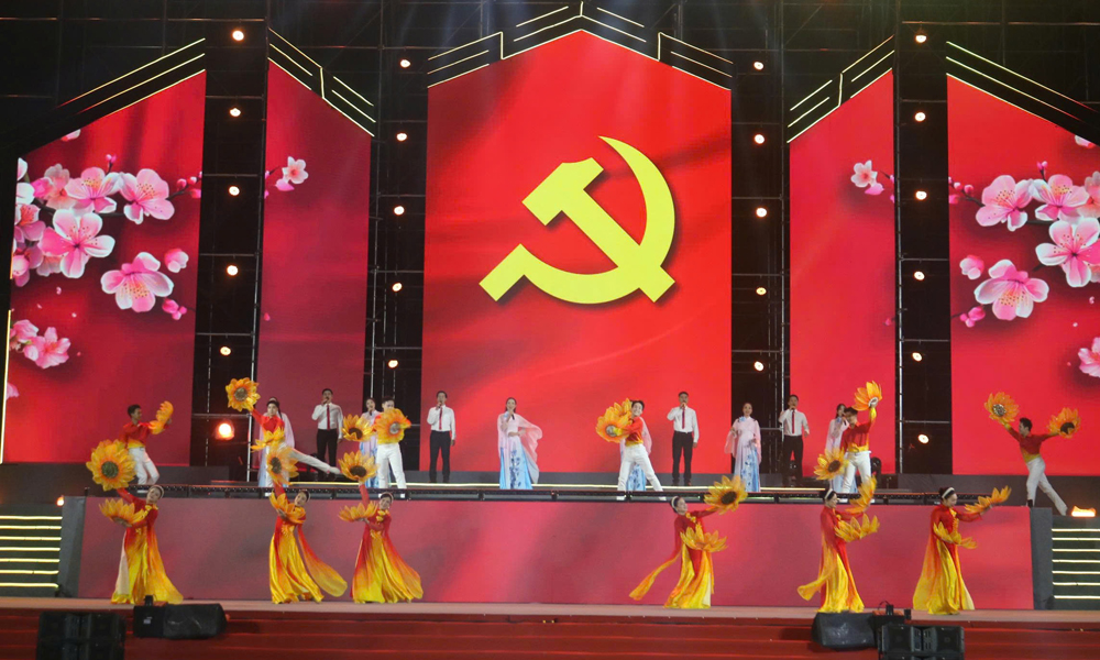 Tiết mục "Đảng đã cho ta một mùa xuân" trong chương trình nghệ thuật đặc sắc chào mừng Đại hội đại biểu toàn quốc lần thứ XIV của Đảng tại Trung tâm Văn hóa Kinh Bắc (phường Vũ Ninh). Ảnh: Thanh Lâm. |