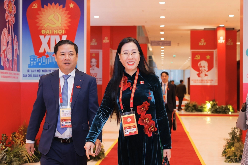 Các đại biểu tham dự Đại hội Đảng XIV, sáng 22/1. |