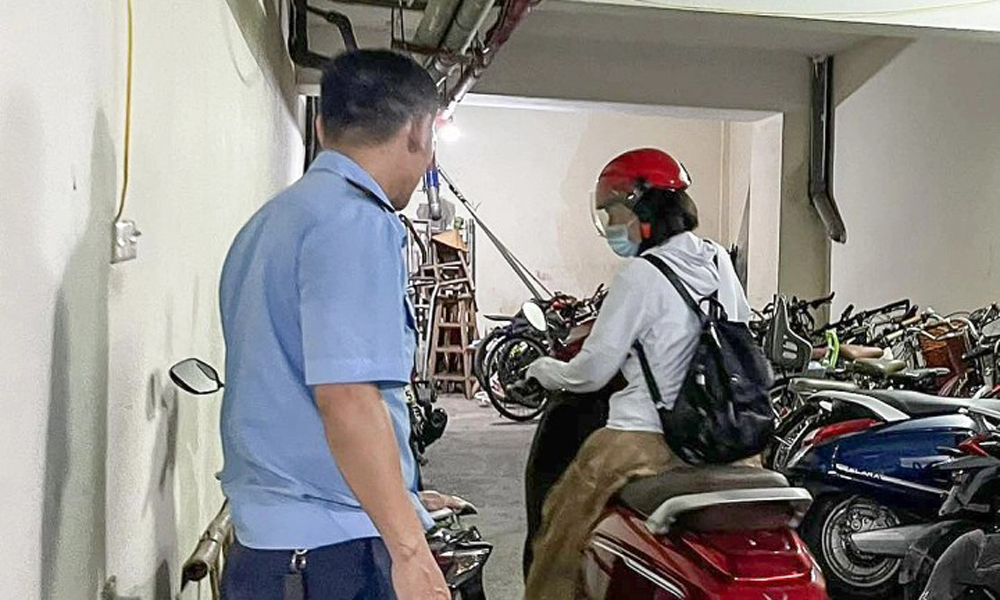 Dắt xe máy, vác pin 20 kg lên tầng 5 để sạc điện