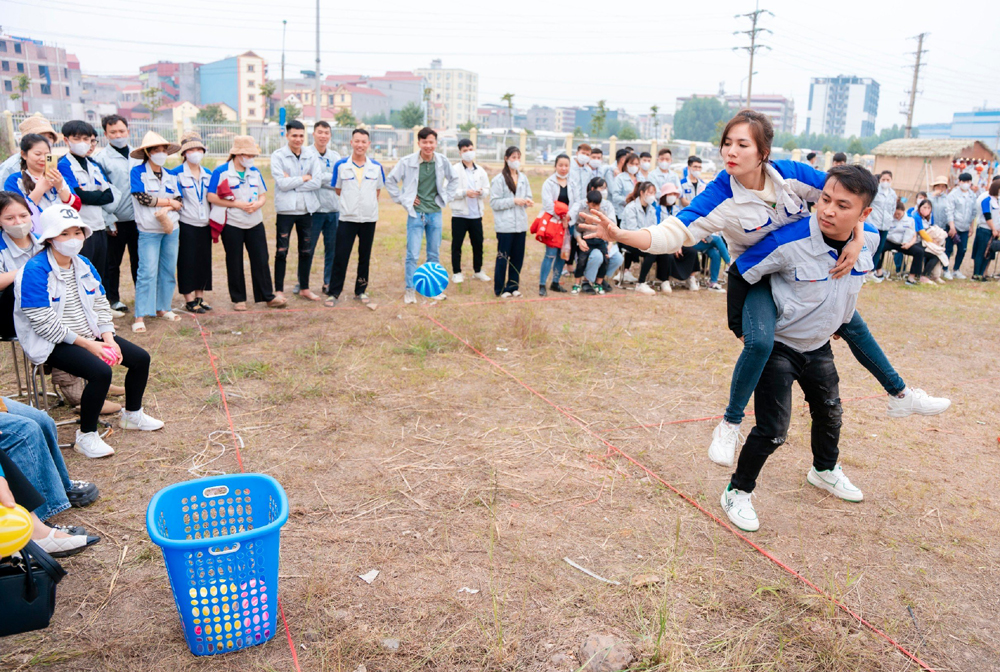 Người lao động Công ty TNHH Hosiden Việt Nam tham gia trò chơi tại ngày hội công nhân. |