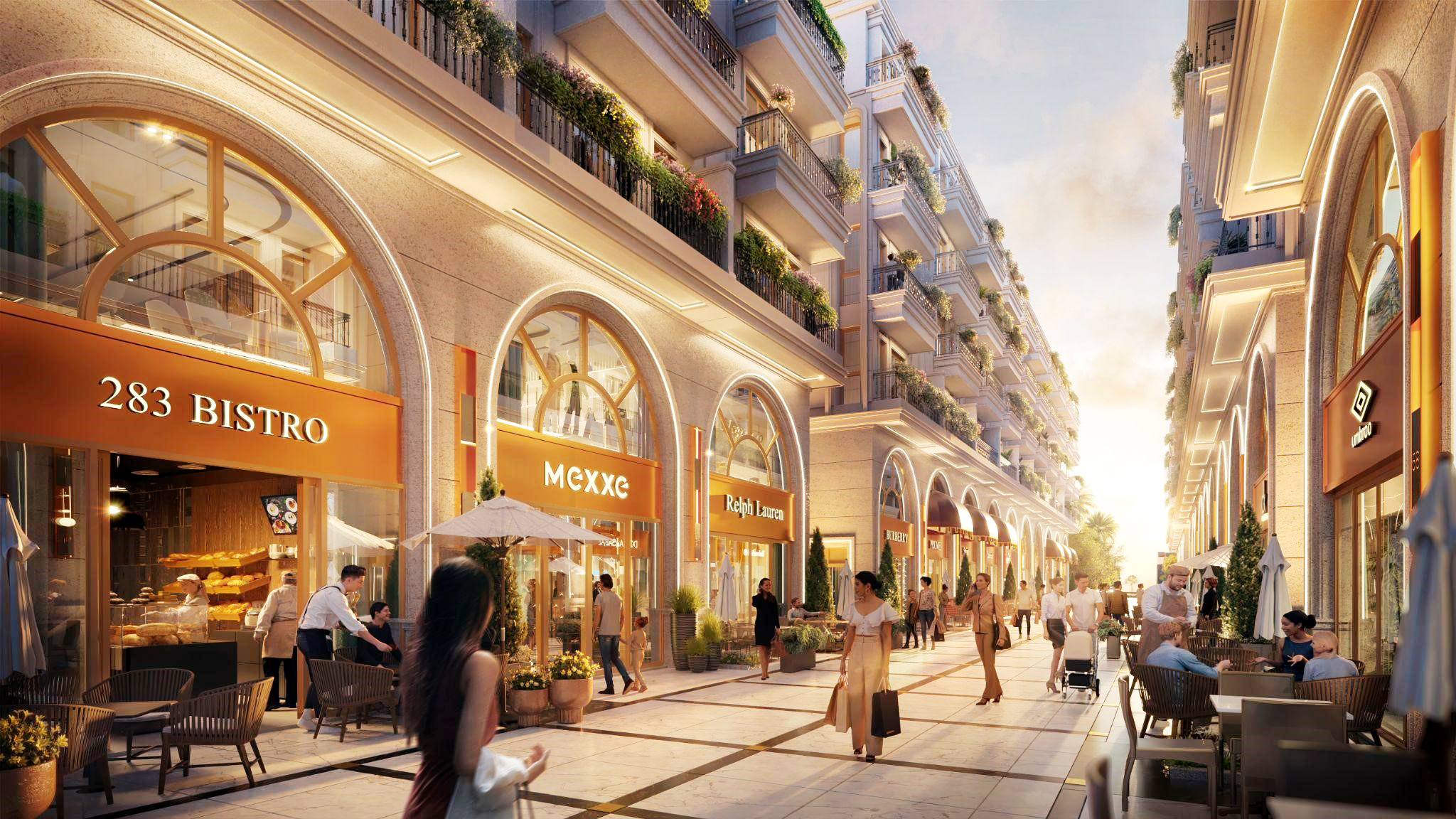Nếu như mặt tiền trước là tuyến phố sầm uất, thì mặt sau chính là các phố đi bộ phong cách châu Âu, điểm đến thu hút và tạo không gian kinh doanh sinh động. Với thiết kế thông minh, mặt phố đi bộ này còn có lối đi riêng dẫn lên tầng trên để mỗi căn thương mại vừa thuận lợi kinh doanh vừa bảo đảm không gian sống riêng tư cao cấp.