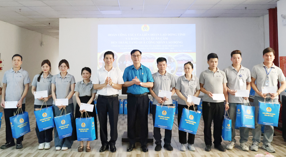 Nhân dịp này, đoàn công tác trao 100 suất quà cho công nhân hoàn cảnh khó khăn và có thành tích trong lao động.