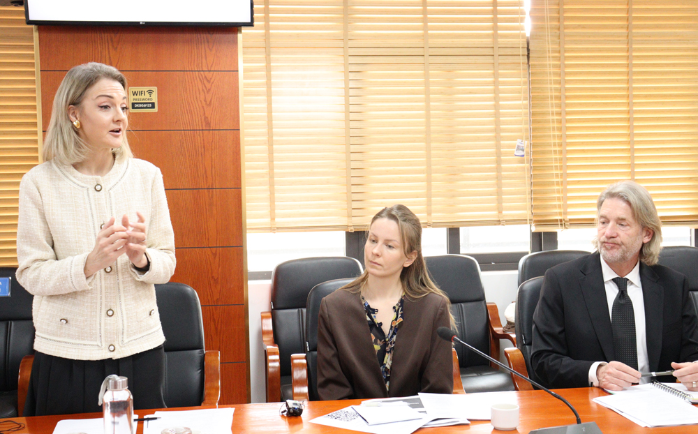 Tại buổi làm việc, bà Lina Balsyte, đại diện đoàn công tác Thụy Điển, Trưởng bộ phận Chăm sóc sức khỏe và Khoa học đời sống khu vực Châu Á - Thái Bình Dương, Hội đồng Thương mại và Đầu tư Thụy Điển (Business Sweden) chia sẻ hành trình của Thụy Điển trong số hóa y tế để nâng cao khả năng tiếp cận, công bằng, chất lượng và đổi mới.