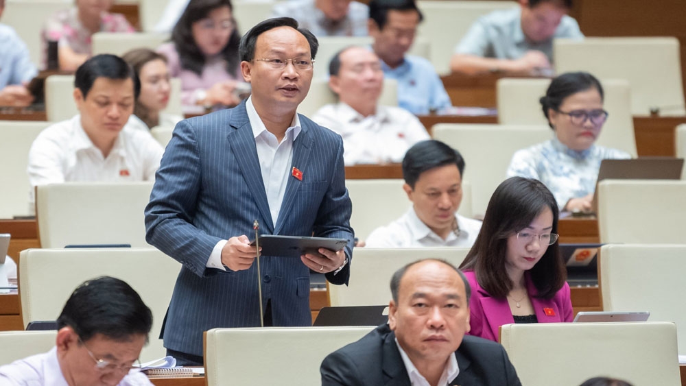 Đại biểu Trần Văn Tuấn (Đoàn Bắc Giang) phát biểu thảo luận. Ảnh Doãn Tấn. |
