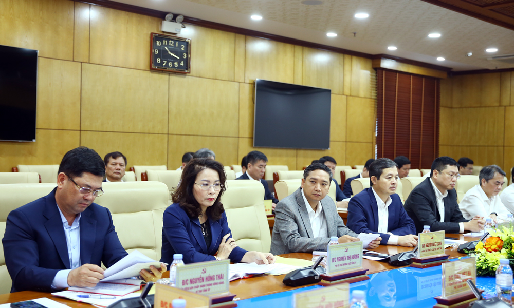 Tiếp và làm việc với Đoàn có các đồng chí: Nguyễn Hồng Thái, Ủy viên Trung ương Đảng, Bí thư Tỉnh ủy; Nguyễn Thị Hương, Phó Bí thư Thường trực Tỉnh ủy; Nguyễn Việt Oanh, Phó Bí thư Tỉnh ủy, Chủ tịch HĐND tỉnh; Phạm Hoàng Sơn, Phó Bí thư Tỉnh ủy, Chủ tịch UBND tỉnh; Trần Huy Phương, Phó Bí thư Tỉnh ủy, Chủ nhiệm Ủy ban Kiểm tra Tỉnh ủy; các đồng chí Ủy viên Ban Thường vụ Tỉnh ủy.