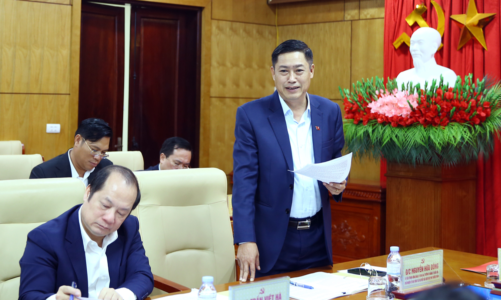 Đồng chí Nguyễn Hữu Đông tham gia ý kiến. |