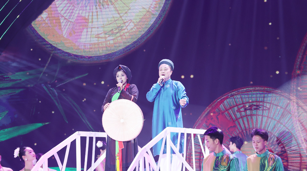 Cảnh quay nghệ sĩ Chu Bảo Quế và các diễn viên trình diễn quan họ. |