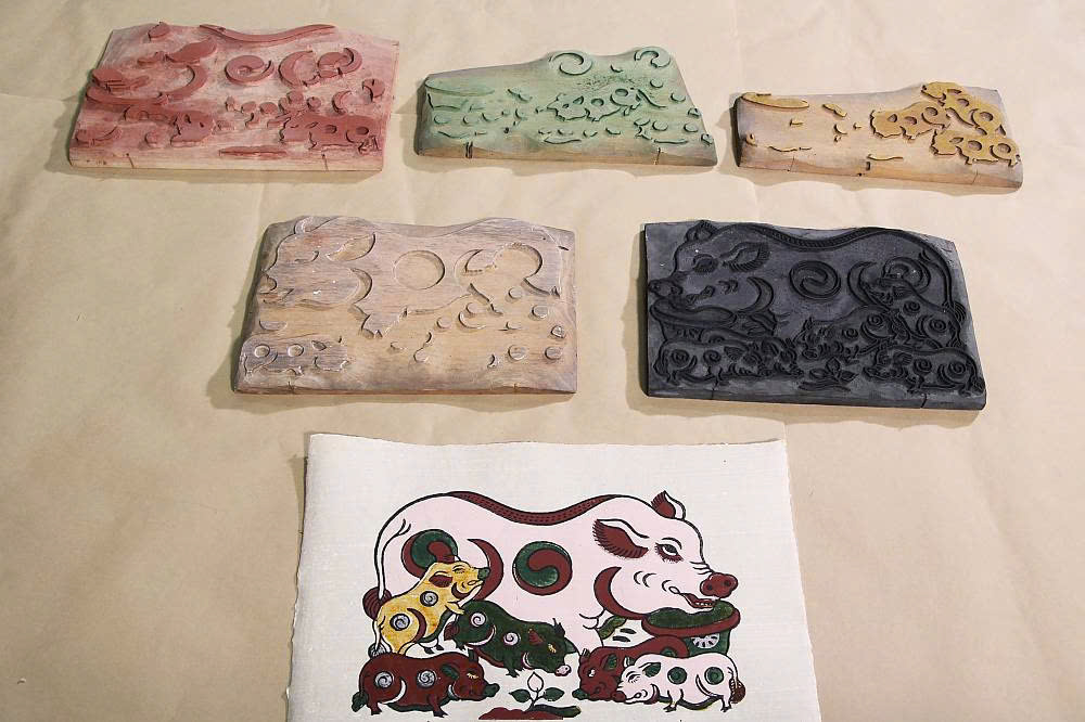 Thông thường, mỗi bức tranh dân gian Đông Hồ sẽ có 5 màu, sau khi in xong các mảng màu, nghệ nhân sẽ in ván nét đen hay còn gọi in nét để viền các mảng màu. |