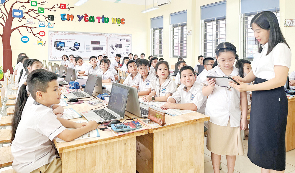 Ứng dụng thiết bị thông minh vào giảng dạy tại Trường Tiểu học Dĩnh Kế (phường Bắc Giang). |