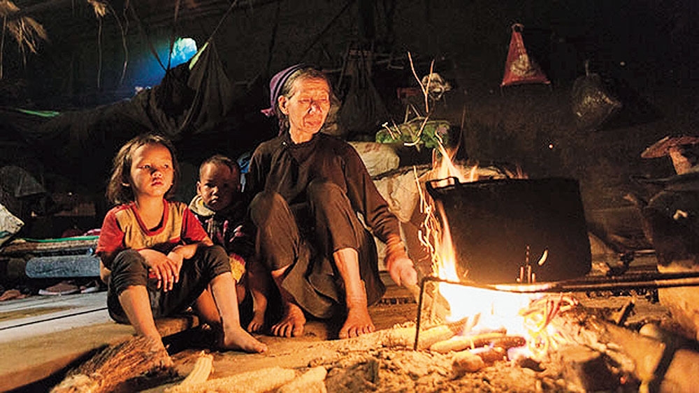 Ông chủ đan những tấm lá móc quây lại gọn một gian dưới nhà ngang cho bố con tôi ở. Mặc dù ông chủ thật thà mời chung bếp chung mâm, có gì ăn nấy nhưng bố tôi xin phép ăn riêng, lấy lý do đi làm giờ giấc thất thường, sợ ảnh hưởng tới gia đình. Thường thì sáng ra, tôi dậy sớm, nấu một nồi cơm to trộn với sắn khô để ăn luôn cả ngày. Muối vừng có sẵn. Rau thì hái ngoài rừng. Bố tôi là người thạo rừng. Mỗi lần từ rừng về thể nào cũng có một ôm đủ thứ cả rau lẫn quả. Bố tôi hướng dẫn tôi nấu. Cái nào nấu canh, cái nào xào, cái nào ăn sống được. Thỉnh thoảng bố tôi ra chợ mua tí mỡ vụn, chủ yếu về lấy mỡ ăn dần, ít khi có tiền mua thịt. Cá ở chợ cũng rẻ. Đôi khi mua được mớ tép về kho với quả sung hái ngoài vườn ông chủ, ăn cũng đậm đà.