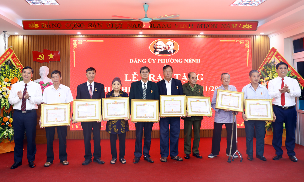 Tại buổi lễ, Đảng ủy phường công bố quyết định của Tỉnh ủy Bắc Ninh trao tặng Huy hiệu Đảng cho 25 đảng viên thuộc Đảng bộ phường Nếnh. Trong số này, đảng viên Nguyễn Huy Tro, Chi bộ tổ dân phố Nam Ngạn (sinh năm 1929) được tặng Huy hiệu 80 năm tuổi Đảng. Ngoài ra, 1 đồng chí được tặng Huy hiệu 60 năm tuổi Đảng, 2 đồng chí 55 năm tuổi Đảng, 1 đồng chí 50 năm tuổi Đảng. Còn lại 20 đồng chí được tặng Huy hiệu 30, 40 và 45 năm tuổi Đảng.