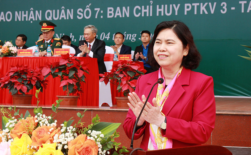Thay mặt các đồng chí lãnh đạo tỉnh, đồng chí Trần Thị Hằng trân trọng cảm ơn, biểu dương các cấp, ngành đã thực hiện nghiêm túc, đúng quy trình công tác tuyển chọn, gọi công dân nhập ngũ năm 2026. Đồng thời ghi nhận tinh thần trách nhiệm của các thanh niên lên đường làm nhiệm vụ và tri ân các gia đình, những người cha, người mẹ đã nuôi dưỡng, cổ vũ, động viên con em tham gia bảo vệ Tổ quốc.