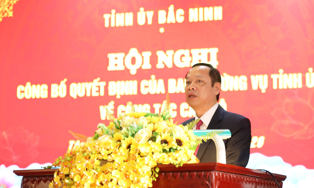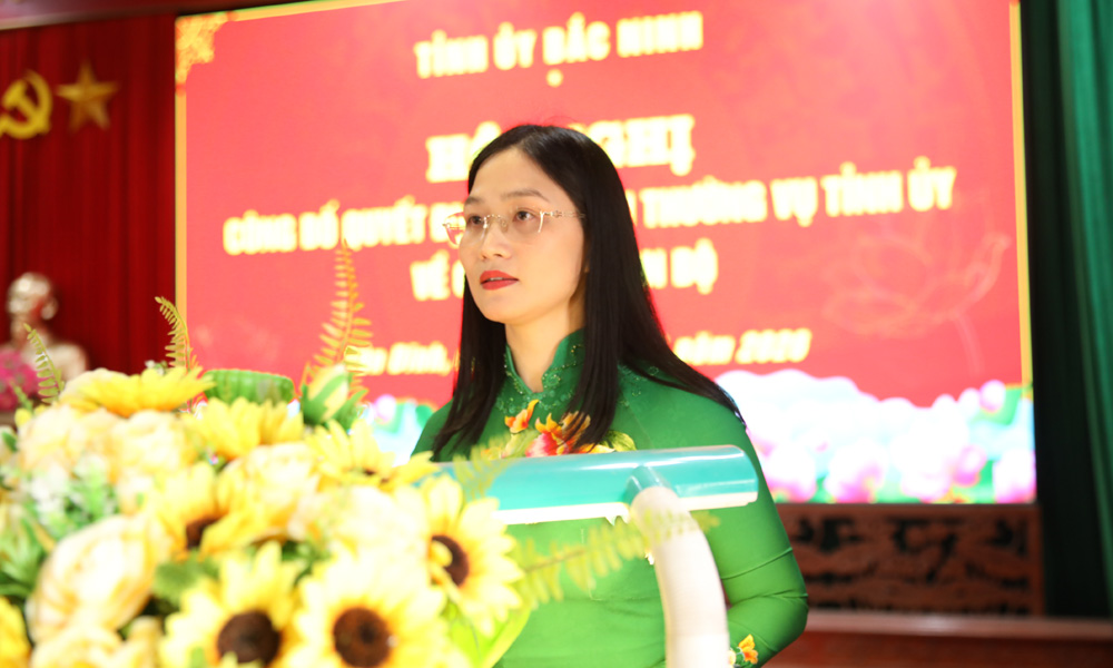 Đồng chí Ngô Văn Nam công bố quyết định của Ban Thường vụ Tỉnh ủy về công tác cán bộ. Theo đó, Ban Thường vụ Tỉnh ủy điều động, luân chuyển, chỉ định đồng chí Trương Ngọc Bích, Phó Giám đốc Sở Tư pháp tham gia Ban Chấp hành, Ban Thường vụ, giữ chức Bí thư Đảng ủy xã Tân Dĩnh, nhiệm kỳ 2025 - 2030.