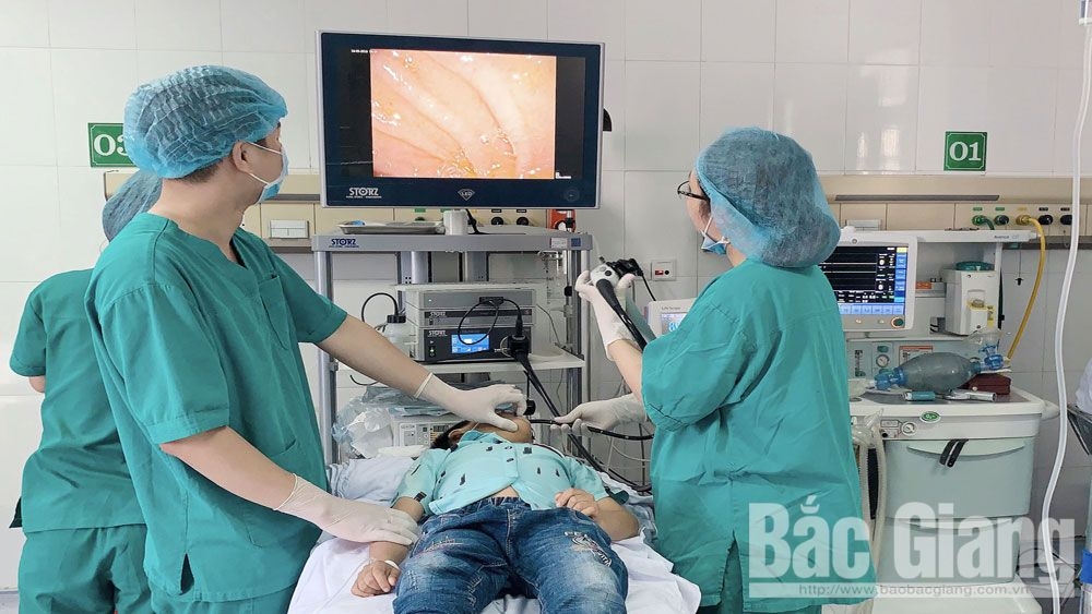 Bệnh nhân được thực hiện kỹ thuật đốt u phổi bằng vi sóng. |