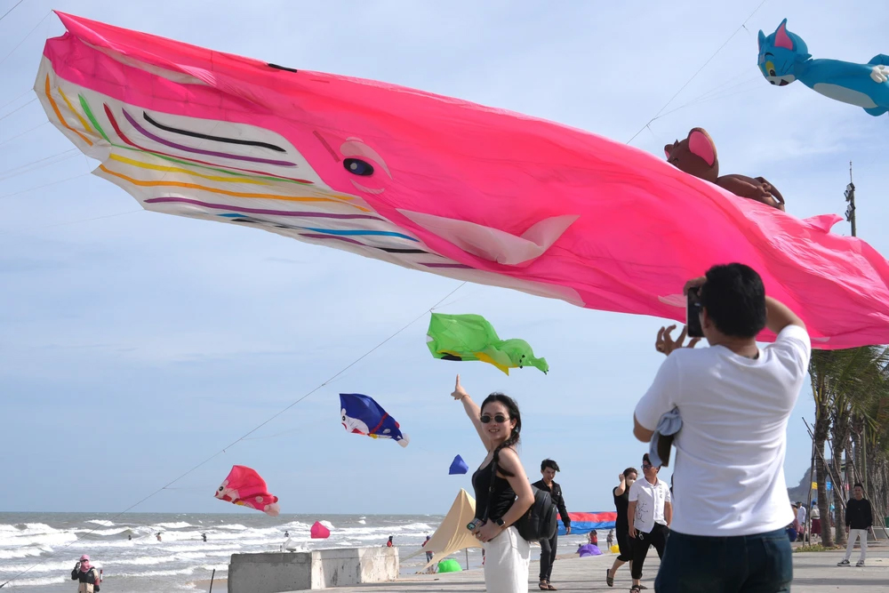 Du khách checkin tại Liên hoan Diều nghệ thuật quốc gia năm 2025 tại khu vực Bãi Sau, phường Vũng Tàu. |