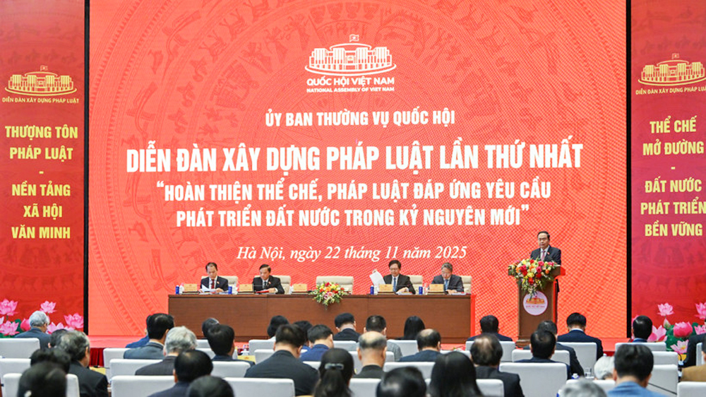 Sáng 22/11, tại Nhà Quốc hội, Chủ tịch Quốc hội Trần Thanh Mẫn đã chủ trì và phát biểu khai mạc tại Diễn đàn xây dựng pháp luật lần thứ nhất với chủ đề “Hoàn thiện thể chế, pháp luật đáp ứng yêu cầu phát triển đất nước trong kỷ nguyên mới”.