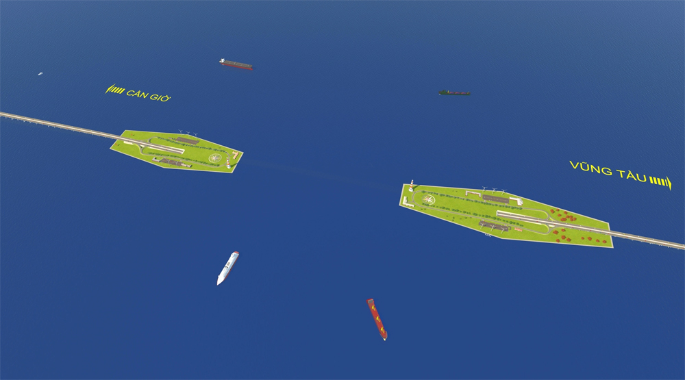 Thiết kế sơ bộ đảo nhân tạo ở đầu hầm ngầm hướng Cần Giờ đi Vũng Tàu. Trên đảo bố trí các mảng xanh, công trình tiện ích, giao thông nội khu, bãi đỗ xe cùng các dịch vụ kèm theo. Đây cũng là nơi để người dân, du khách có thể dừng chân nghỉ ngơi, ngắm cảnh trên hành trình.