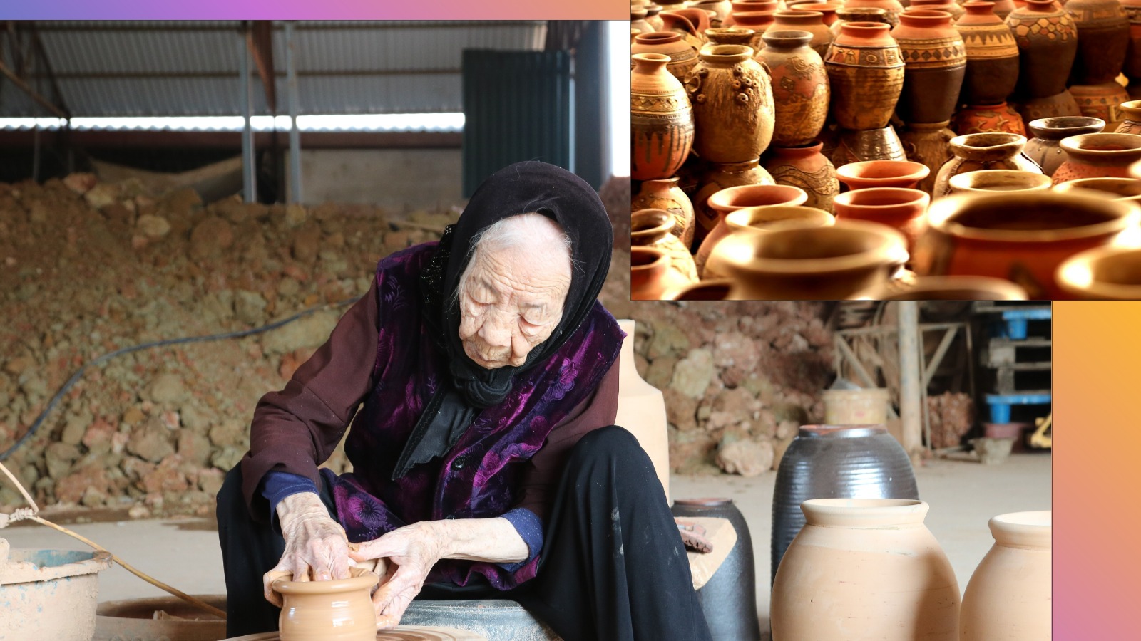 Cũng ở thôn Thủ Công, nghệ nhân Nguyễn Thị Toán lại mang đến một chân dung khác của người thợ gốm Phù Lãng: Cần mẫn, sáng tạo và không khuất phục trước số phận. Sinh ra trong gia đình có tám anh chị em, bảy người theo nghề gốm, bà Toán sớm quen với mùi đất, mùi lửa từ thuở nhỏ.