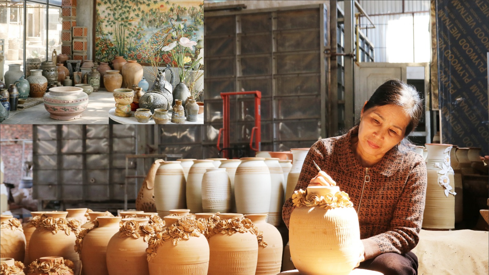 Nếu cụ Luận là “ký ức sống” của làng nghề, bà Toán làm giàu nghề bằng sáng tạo, thì nghệ nhân Nguyễn Thị Nhung lại là cầu nối đưa gốm Phù Lãng bước ra không gian rộng lớn hơn. Sinh ra và lớn lên ở thôn Thủ Công, lấy chồng cùng làng, bà Nhung gắn bó với nghề theo cách rất riêng.