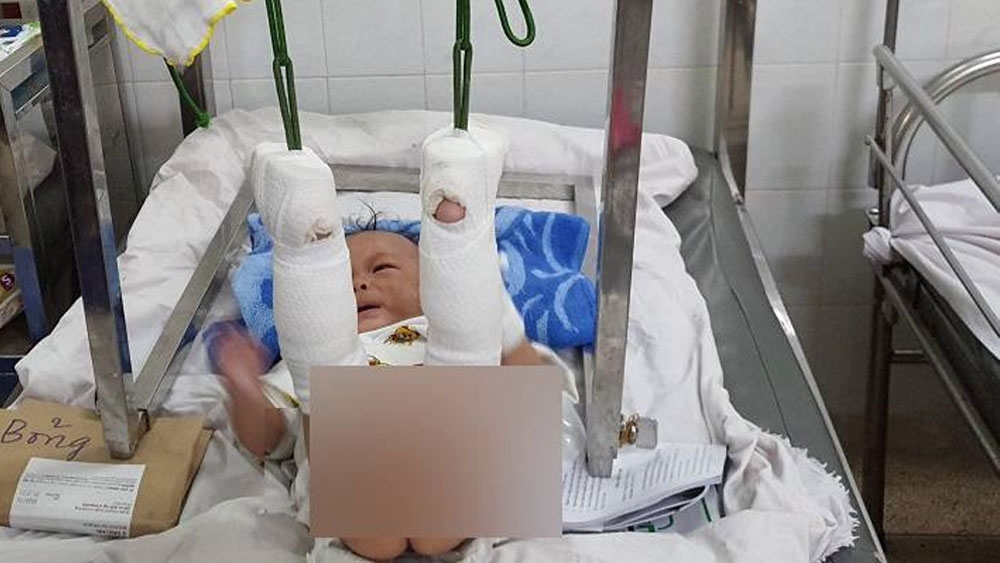 Làm việc với công an, Tiến khai, đêm 3-2, Tiến nhận con rồi đưa vào phòng cho bú, ngủ trên võng. Gần 23 giờ, bé thức dậy, Tiến dỗ nhưng không nín. Tiến dùng tay tát mạnh vào má bé, đánh vào mông, giật võng khiến bé Khôi văng xuống đất. Thấy bé bị thương nên gã này sợ quá mang qua nhà bố nhờ đưa đi cấp cứu.