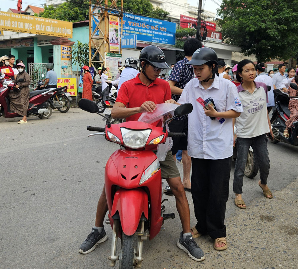 Sáng nay, tại các điểm thi đều có mặt các lực lượng công an và đoàn thanh niên tham gia hỗ trợ thi; hướng dẫn người dân tham gia giao thông tại các điểm thi. Qua nắm bắt, trên địa bàn tỉnh không xảy ra tình trạng tắc đường, kể cả các điểm thi gần những vùng thu hoạch vải thiều. Dự báo thời tiết hôm nay nắng nóng gay gắt, các địa điểm thi đều được bố trí phương án cấp điện bảo đảm thuận lợi, an toàn; nhiều đội thanh niên tình nguyện tặng quạt, nước uống cho thí sinh và phụ huynh. Trong buổi sáng, các thí sinh thi môn Ngữ văn, thời gian làm bài 120 phút.