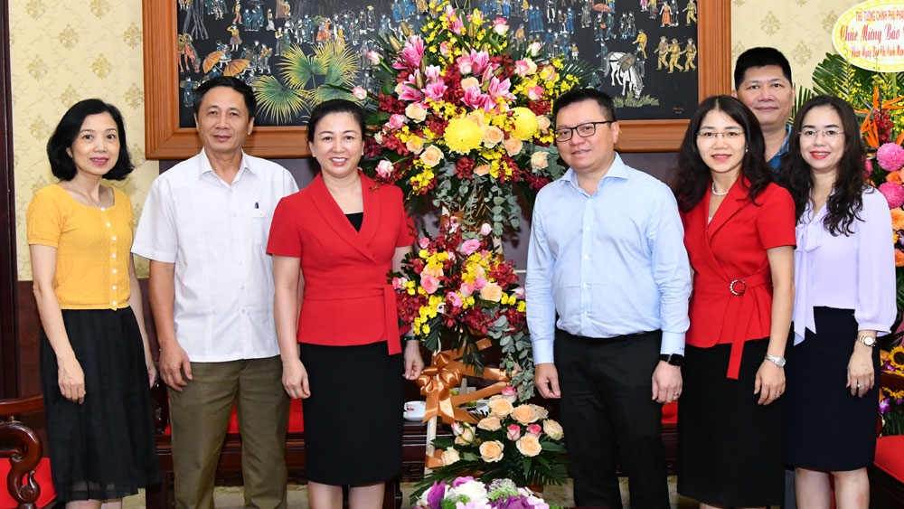Đồng chí Lê Ánh Dương tặng hoa chúc mừng lãnh đạo các cơ quan báo chí.