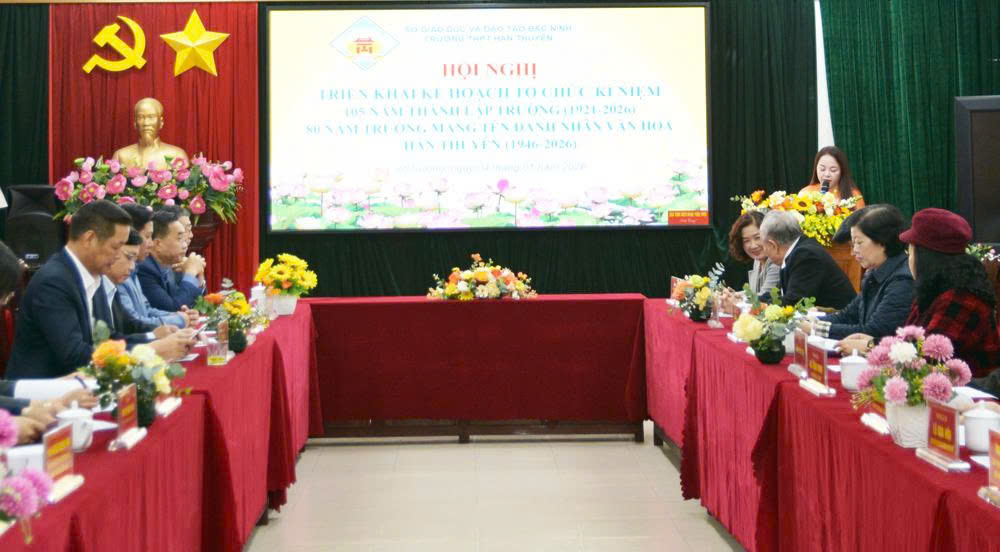 BẮC NINH - Ngày 4/1, Trường Trung học phổ thông Hàn Thuyên (phường Võ Cường, tỉnh Bắc Ninh) tổ chức buổi họp với một số ngành của tỉnh và cựu học sinh tiêu biểu triển khai kế hoạch tổ chức lễ kỷ niệm 105 năm thành lập (1921 - 2026) và 80 năm mang tên danh nhân văn hoá Hàn Thuyên (1946 - 2026).
