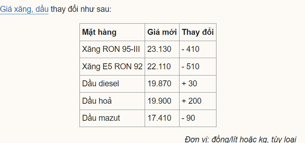 Ngược lại, các mặt hàng dầu tăng (trừ mazut) và có giá mới 19.870-19.900 đồng một lít so với cách đây 7 ngày. Dầu mazut bớt 90 đồng, xuống 17.410 đồng một kg.