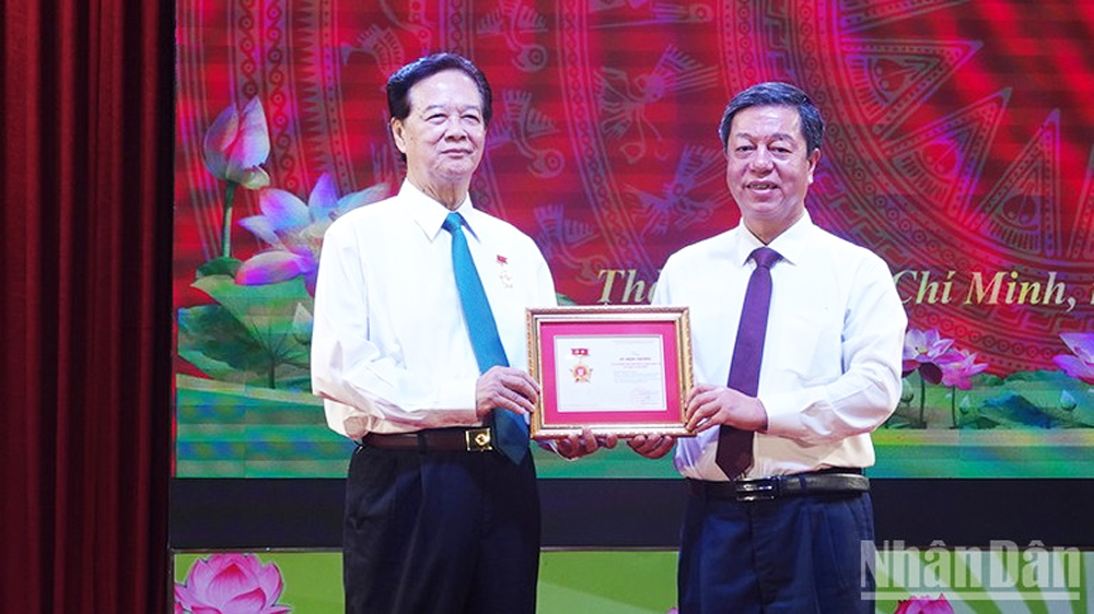 Tại lễ ra mắt sách, Nhà xuất bản Chính trị quốc gia Sự thật trao kỷ niệm chương Vì sự nghiệp xuất bản sách lý luận, chính trị của Đảng và Nhà nước cho đồng chí Nguyễn Tấn Dũng.