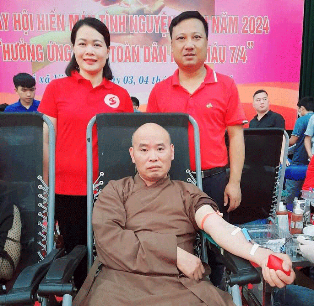 Không chỉ đồng bào công giáo, thật cảm động biết bao, nhiều nhà sư cũng tích cực đăng ký HMTN. Với tâm niệm “Cứu một mạng người phúc đẳng hà sa, hơn xây 7 tháp phù đồ”, nhiều năm qua, sư thầy Thích Đàm Lương, trụ trì chùa Dâu, xã Nội Hoàng, huyện Yên Dũng đã hiến máu gần 20 lần. Hình ảnh nhà sư áo nâu, cổ đeo tràng hạt nằm trên chiếc ghế, bóp quả bóng cao su để chia sẻ những giọt màu hồng đã làm lay động trái tim bao người. “Dẫu sau này tôi không còn trên cõi đời nhưng giọt máu tôi cho đi vẫn còn trong cơ thể người sống, kéo dài cuộc đời họ. Điều đó có nghĩa là sự sống trong tôi vẫn còn tồn tại”, sư thầy Thích Đàm Lương tâm sự.