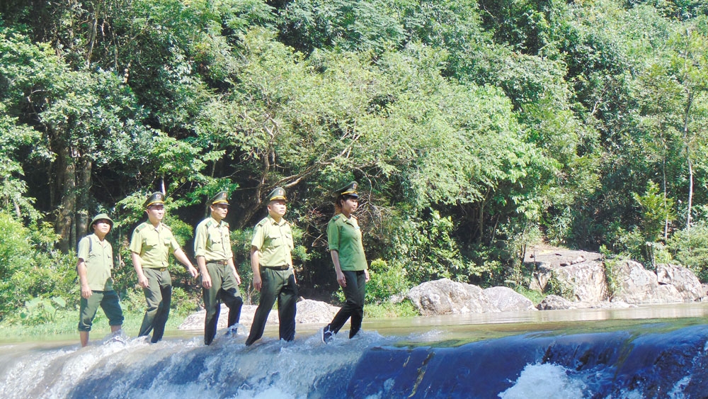 Lực lượng kiểm lâm và đại diện các đoàn thể, người dân xã An Bá phối hợp tuần tra, bảo vệ rừng trên địa bàn. |