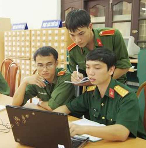 Cán bộ, học viên Học viện Hậu cần trao đổi kiến thức.