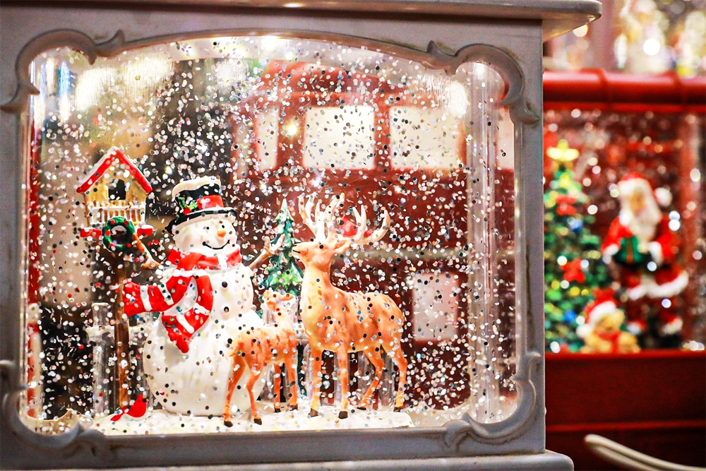 Từ cây thông mini, vòng nguyệt quế, ông già Noel, tuần lộc đến đèn nháy, quả châu… tất cả tạo nên không gian rực rỡ, bắt mắt.
