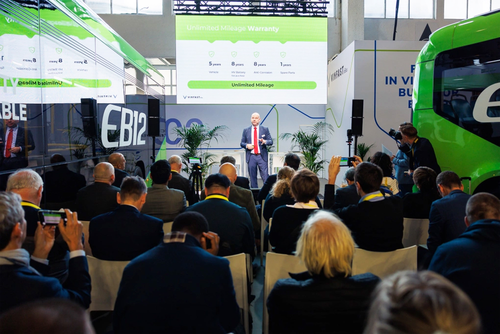 Hai mẫu bus điện VinFast ra mắt tại châu Âu