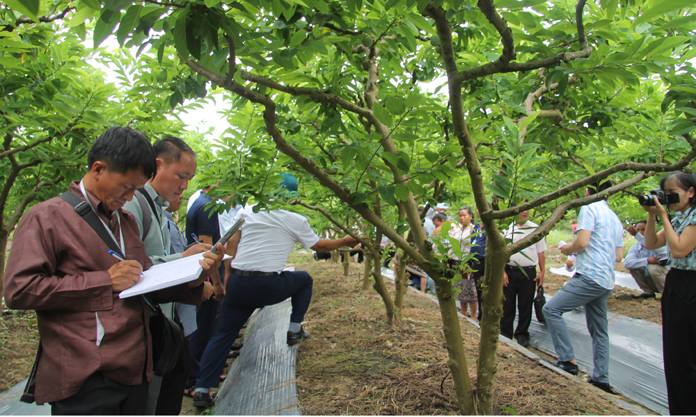 Đoàn cán bộ nông dân tỉnh Xay Sổm Bun tham quan, học tập kinh nghiệm trồng na tại tỉnh Bắc Ninh. |