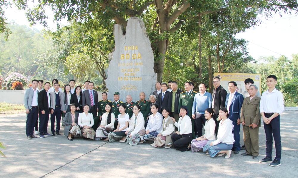 Cán bộ và lưu học sinh Lào tham quan di tích chùa Bổ Đà, tỉnh Bắc Ninh. |