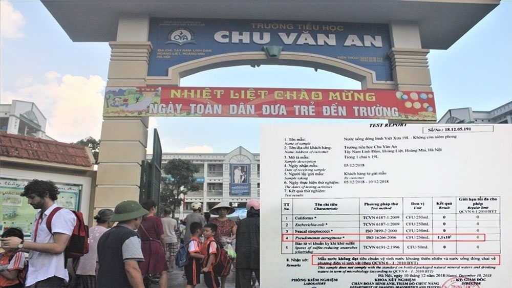 Những giờ qua, phụ huynh có con học tại Trường Tiểu học Chu Văn An (một trong những trường đông học sinh nhất thủ đô) vô cùng hoang mang và bức xúc cho rằng loại nước uống con mình sử dụng hằng ngày tại trường có nhiễm trực khuẩn mủ xanh.