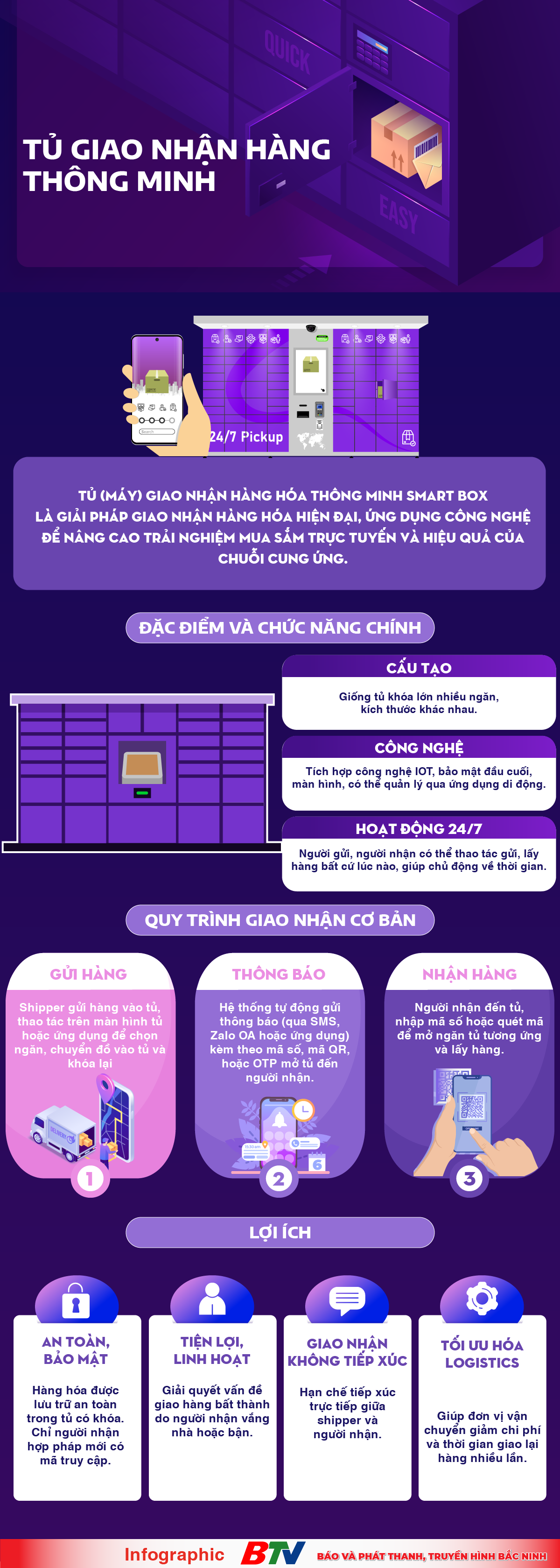 BẮC NINH - Bắc Ninh đang tăng tốc triển khai lắp đặt hệ thống Tủ (máy) giao nhận hàng hóa thông minh (Smart Box) tại các khu vực dân cư, nhà ở công nhân và khu công nghiệp. Đây là giải pháp công nghệ nhằm hiện đại hóa dịch vụ giao nhận, mang lại sự tiện lợi, linh hoạt và an toàn tuyệt đối cho người dân và doanh nghiệp. Hãy cùng tìm hiểu Smart Box là gì? Smart Box hoạt động ra sao và những lợi ích mà nó mang lại trong hành trình xây dựng đô thị thông minh tại Bắc Ninh.