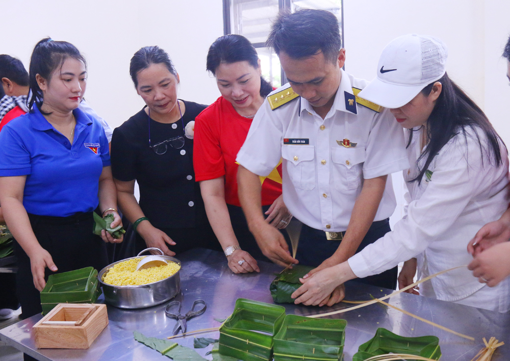 Hoạt động gói bánh chưng tại Trạm Ra đa 600. |