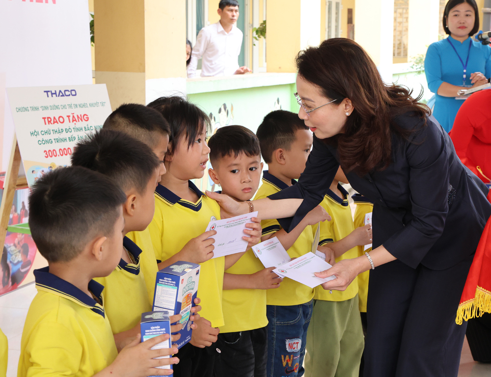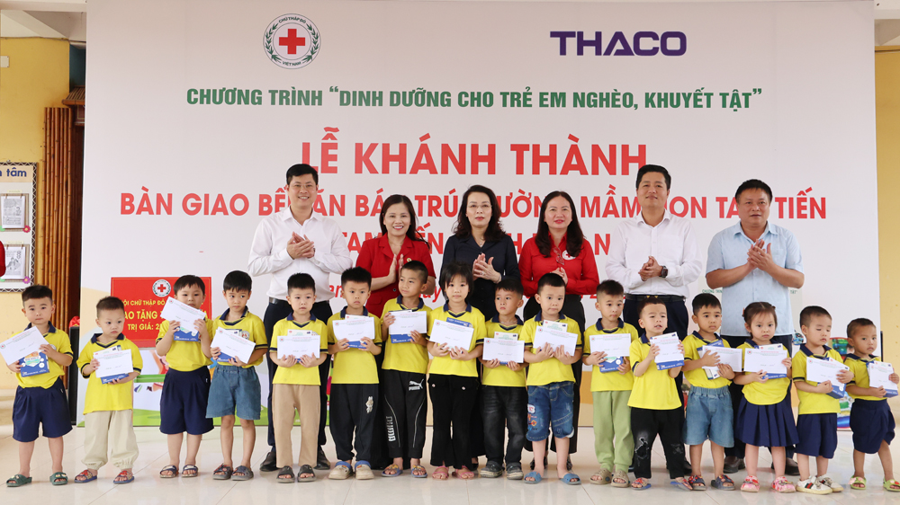Đồng chí đề nghị Trường Mầm non xã Tam Tiến phát huy hiệu quả công trình, bám sát các quy định về dinh dưỡng, an toàn thực phẩm; tổ chức bữa ăn khoa học, hợp lý, phù hợp với lứa tuổi. Đồng thời, tiếp tục phối hợp chặt chẽ với các cấp Hội Chữ thập đỏ và địa phương trong triển khai các hoạt động chăm sóc, bảo vệ trẻ em, qua đó nâng cao chất lượng nuôi dưỡng, chăm sóc, bảo vệ, giáo dục toàn diện.