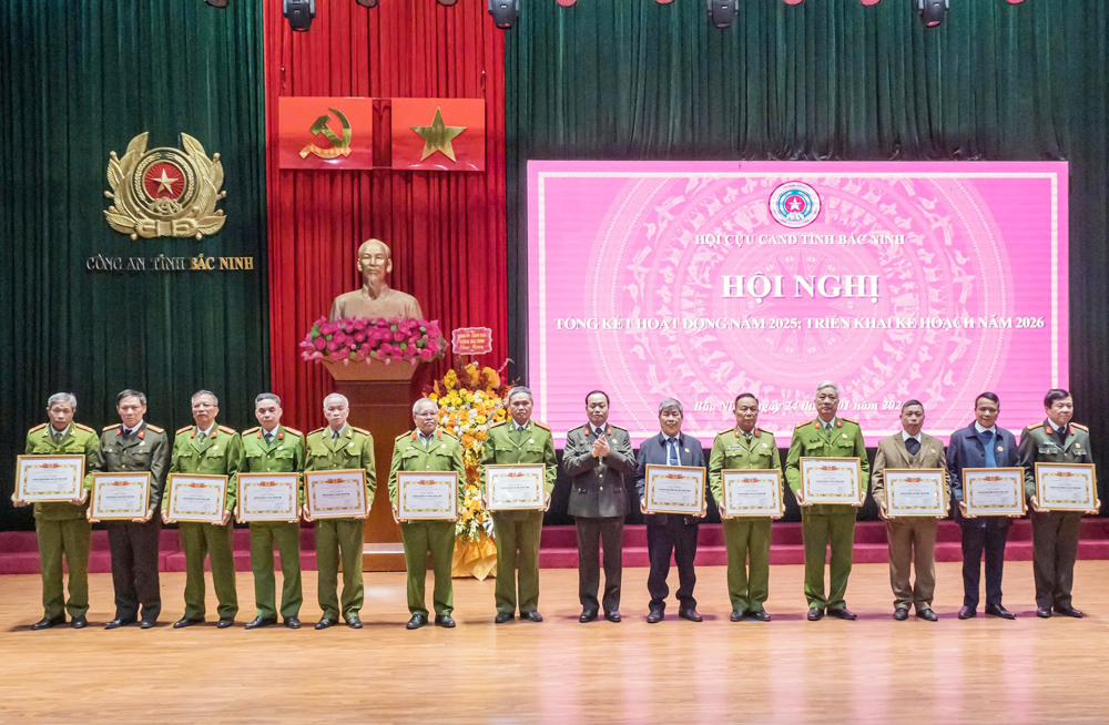 BẮC NINH- Tại trụ sở Công an tỉnh Bắc Ninh, Hội Cựu Công an nhân dân tỉnh Bắc Ninh vừa tổ chức hội nghị tổng kết công tác hội năm 2025, triển khai nhiệm vụ năm 2026; trao thẻ hội viên Hội Cựu Công an nhân dân Việt Nam cho các đồng chí nguyên lãnh đạo Công an tỉnh Bắc Giang, Bắc Ninh qua các thời kỳ; triển khai chương trình “Nghĩa tình cựu công an nhân dân tỉnh Bắc Ninh”.