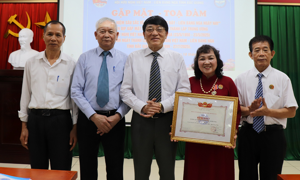 BẮC GIANG - Sáng 18/5, Hội Hữu nghị Việt Nam - Liên bang Nga tỉnh Bắc Giang tổ chức gặp mặt nhân kỷ niệm 75 năm Ngày thành lập Hội hữu nghị Việt Nam - Liên Xô, Ngày truyền thống Hội hữu nghị Việt Nam - Liên bang Nga 23/5 (1950 - 2025) và 26 năm Ngày thành lập Hội Hữu nghị Việt Nam - Liên bang Nga tỉnh Bắc Giang 27/7 (1999 - 2025).
