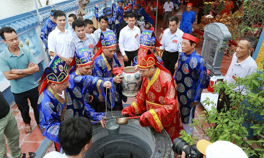 Nghi thức lấy nước ở giếng Rồng trong lễ hội mùa thu ở làng Đại Bái (xã Gia Bình). Ảnh tư liệu. |