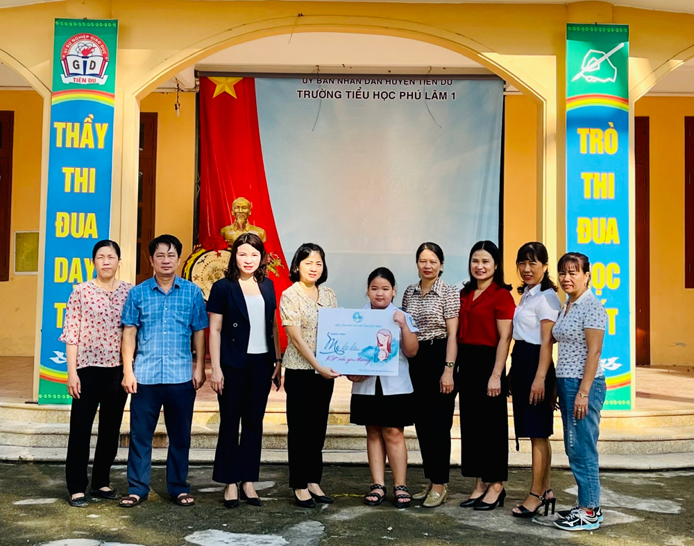 Đại diện Hội Liên hiệp phụ nữ tỉnh Bắc Ninh trao hỗ trợ chương trình "Mẹ đỡ đầu" cho em Ngô Thị Thanh Huyền (xã Tiên Du). |