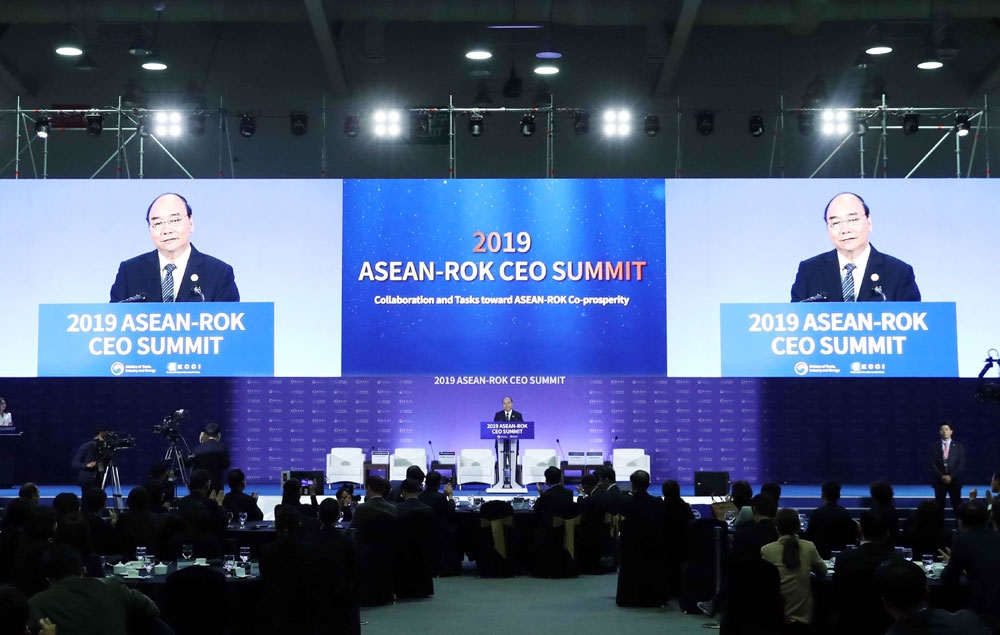 Phát biểu khai mạc Hội nghị Cấp cao đặc biệt ASEAN-Hàn Quốc diễn ra tại thành phố cảng Busan ngày 26-11, Tổng thống Moon Jae-in nêu rõ: "Chúng ta đang phải đối mặt với nhiều thách thức mới như chủ nghĩa bảo hộ, tội phạm xuyên quốc gia và cuộc Cách mạng Công nghiệp lần thứ 4. Chỉ có sự hợp tác và đoàn kết giữa các nước mới có thể giúp vượt qua được những thách thức đó".
